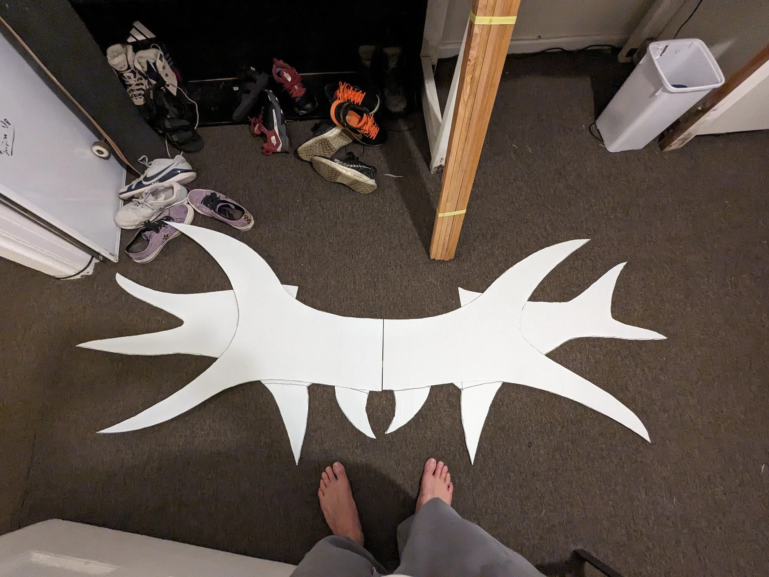 I designed the stage in Resolume, using slice transforms. Once each shape was finalized, I split up the design into sections and projected them onto sheets of white core flute. The pieces were then assembled together, using zip ties and a wooden frame. This ensured a very light weight design, since the venue only had a weak curtain rail we could rig from.